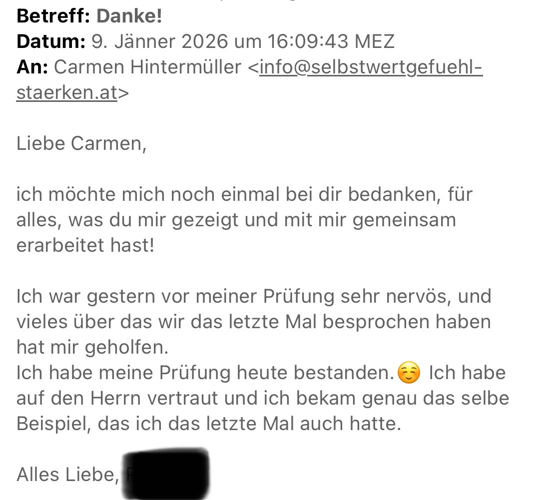 Dein Selbstwert entsteht nicht mehr aus Leistung oder Anerkennung, sondern aus dem Wissen, von Gott angenommen und geliebt zu sein.